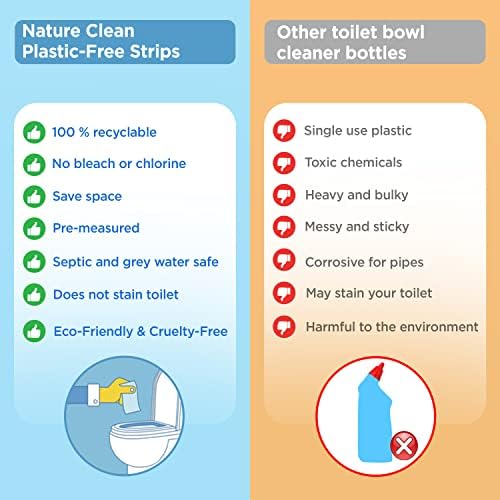 ✅ QUICK AND EASY CLEANING: Our concentrated toilet bowl cleaning strips provide you with a simple and quick way to clean your toilets without worrying about any splashing, squirting, or messy cleanups. Ideal for day-to-day use.