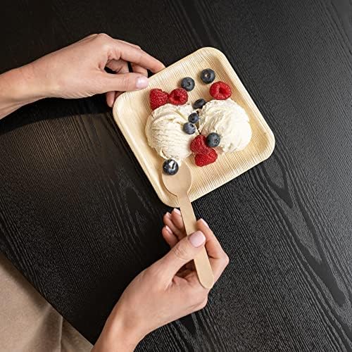Food-Friendly Plates – Built To Withstand Any Dish: Our disposable palm leaf plates are strong, durable, and suitable for hot and cold foods/liquids; They’re also microwave and oven safe up to 350 degrees; Plus, this compostable cutlery and plate set will save you tons of time cleaning up when the party’s over