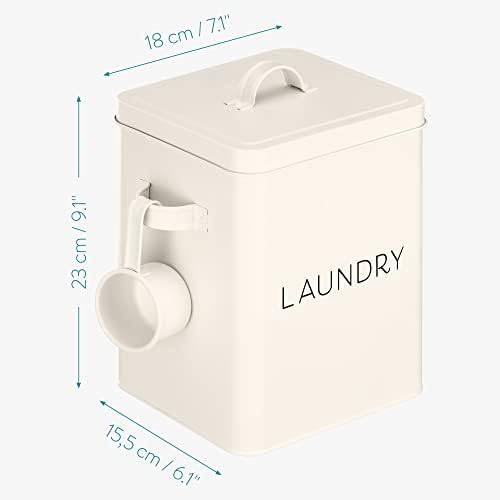 PRODUCT DETAILS: The laundry soap container measures 9.05″ x 7.08″ x 6.1″ (23 cm x 18 cm x 15.5 cm). Delivery includes a lid for the box, as well as a scoop.