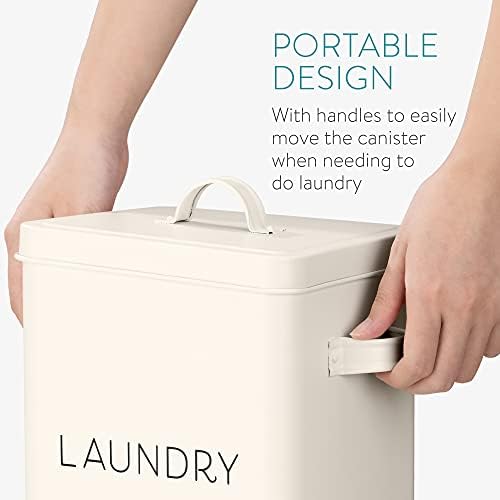 LIGHTWEIGHT: The container is made of lightweight powder coated zinc and iron, for a metal tin that’s both sturdy and easy to move around. Handles on the side help to carry the box to your washing machine.