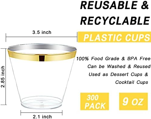 Convenience: One of the advantages of using plastic cups with gold rim is the convenience they offer during cleanup. After the event, you can simply discard these 9oz heavy duty plastic cups, eliminating the need for washing and reducing post-event cleanup time.