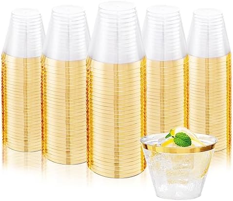 Perfect for Any Occasions: With a 9 oz capacity, these gold plastic cups disposable are perfect for serving a variety of beverages, including wine, cocktails, juices, or soft drinks. Ideal for weddings, receptions, birthday parties, holidays, picnics, catered events and all occasions.