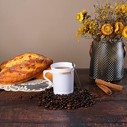 Elegant Design: The white gold design of disposable coffee cups with handles gives people a sense of dignity and atmosphere. The golden edge design makes the disposable tea cups elegant. The design of the handle makes it more convenient and safe for you to use, so that you won’t be burned by hot coffee or drink. You can use these white gold plastic cups to host an elegant event.