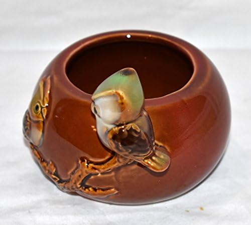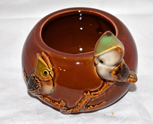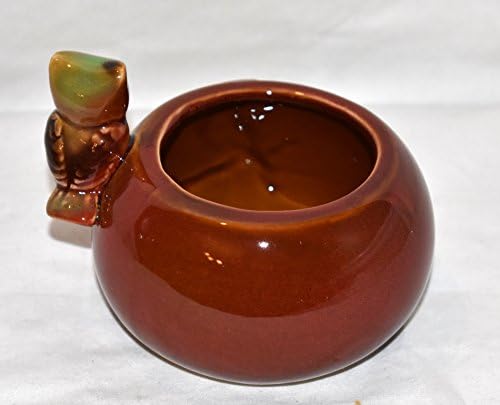 The design is of a 3 Dimensions Owl Standing on the Edge of a Branch. There is another owl Sitting on a branch below him. This is a Reactive Glaze so no 2 will be exactly alike. The colors are amber, browns, green & tan. The dimensions of this adorable holder are 3.5″ tall at the top of the owl x 4″ in diameter. The opening is 2.5″. This is made of ceramic. This is a wonderful decorative multi-purpose holder and can be used for just about anything! It can be used to hold your Kitchen Sink Scrubber, Some spare Change or Put a bamboo Plant in it. This is fully glazed inside and outside. There is no drain hole in this. This is just adorable…