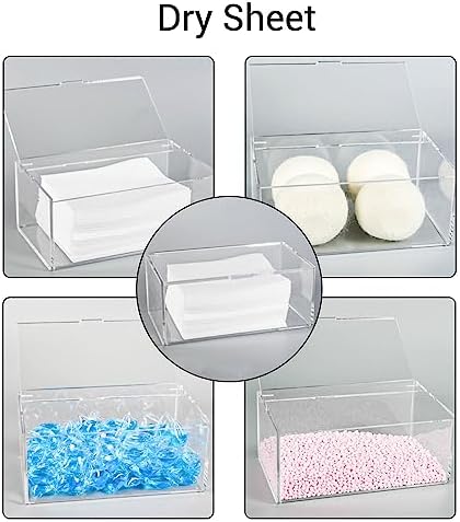 Widely Use: Our transparent storage box is perfect for a variety of settings. Not only can it be used in the laundry room to organize dryer sheets, laundry beads, and other laundry essentials, but it can also serve as a desktop display case for showcasing your delicate figurines or other collectibles. Additionally, it can be utilized for desktop organization, keeping your miscellaneous small items neatly stored away.