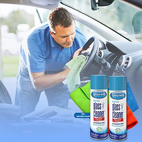 NikCatcher Bundle: Sprayway Glass Cleaner Bundle with NikCatcher Microfiber Cleaning Cloth Towels – Pack of 2 Foam Spray Cans and 3-Pack 16×16″ 400 GSM Towels
