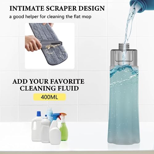 🦋【Multi-Surface Use】- Microfiber spray mop for floor cleaning, such as hardwood, laminated wood, tile, vinyl. You can add your favorite cleaning solution according to different cleaning needs, but please do not pour strong acid, boiling water into the bottle for use, because it will hurt the floor