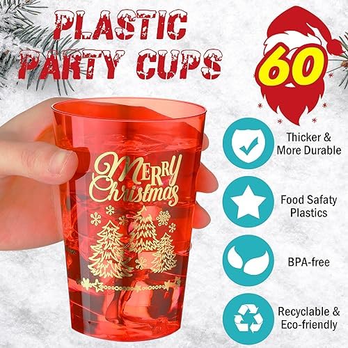 Sufficient Quantity: you will receive 60 pcs 12 oz Christmas party clear plastic cups in red and green colors, 30 pieces for each color, making it convenient for you to share with family and friends; It can meet your usage needs at family gatherings and various parties and is the ideal choice for Christmas party decoration
