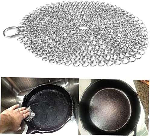 – Specifically designed chain mail allows treatment of cast iron pans metal scouring pad.
