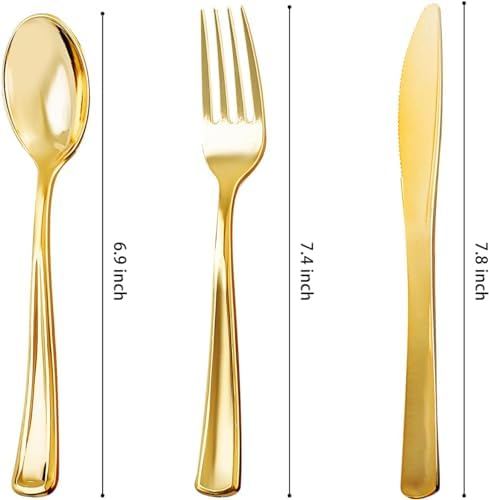 【APPLICABLE TO ALL KINDS OF OCCASIONS】Our gold silverware disposable are good choice for your birthday, party, wedding and other formal or informal occasions tableware.