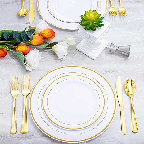 【SAFE AND HEALTHY MATERIAL】These gold disposable silverware are made of food-grade, non-toxic, BPA-free plastic to ensure you and your guests have a safe and happy dining experience.
