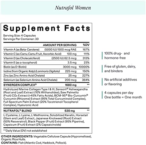 1-MONTH SUPPLY: 1 bottle of Nutrafol Women hair growth supplement, a clinically proven hair growth supplement for women that promotes faster-growing, visibly thicker, fuller, stronger hair (6)
