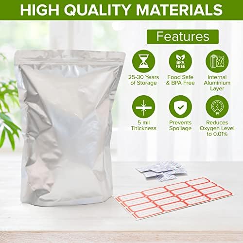 Includes Labels and Absorbers: Unlike similar products on the market, these sealable bags come with everything you need for a user-friendly, rewarding experience, including 50 x 500cc oxygen absorbers, plus food label stickers!