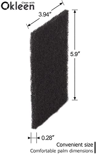 DURABLE, STRONG AND DENSE MATERIAL. Scouring pads are very effective in daily use. Scrub, rub and clean with Okleen scour pads for a long time without any compromise on strength! And dense material of pads ensures this. But before use, test the scour pad first on the inconspicuous area for verifying no surface damage, as some surfaces could be scratched.