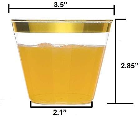 Make every sip a memorable one with our premium plastic wine glasses. Elevate your next gathering with these disposable cocktail cups, ensuring a stress-free and stylish experience. Choose our 100-count 9 oz Gold Rim Party Cups for Adults and let the celebration begin!
