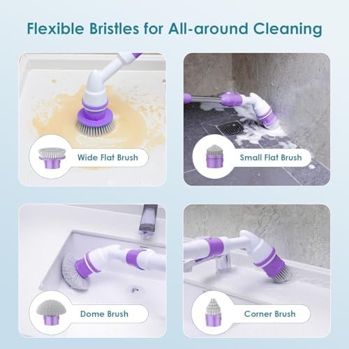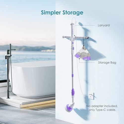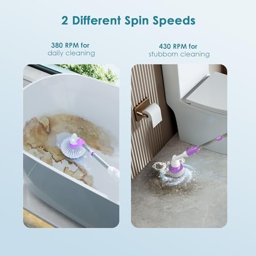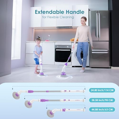 Oraimo Electric Spin Scrubber, Electric Bathroom Scrubber, 430RPM Cordless Shower Scrubber with Adjustable Extension Arm for Bathroom, 3 Replaceable Brushes (Purple)