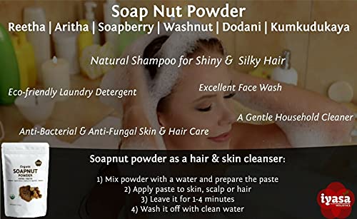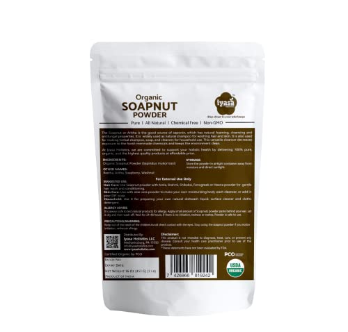 Organic Soapnut Powder, 16oz Bulk Pack, Aritha, Reetha,Sapindus Mukorossi,Natural Skin & Hair Cleanser Shampoo & Conditioner,Laundry Dish Detergent, Households Cleaner