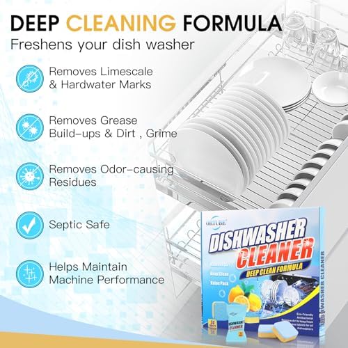 KEEP DISHWASHER FRESH– Our deep descaling formula breaks down the hardwater, grime,grease,mildew and odor causing residue in your dishwasher, and helps to unclog water jets and internal pipework, leaves behind a fresh scent and a clean dish washing.