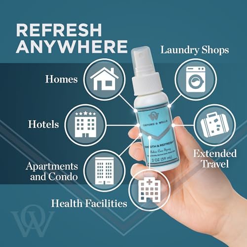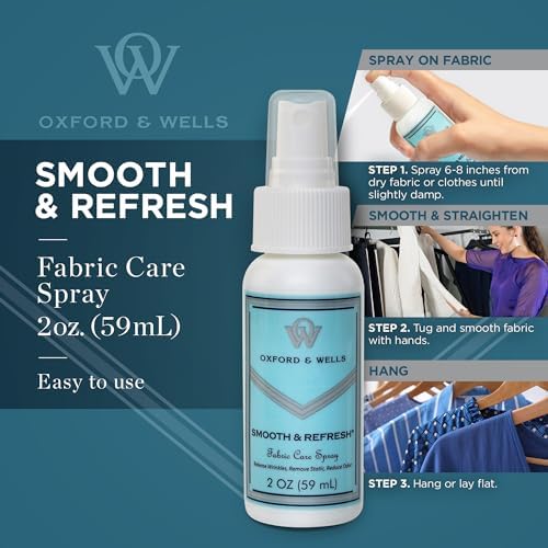Oxford & Wells Smooth & Refresh Non-Ironing Fabric Care Spray, your go-to solution for fabric care on the fly. This innovative spray combines the power of a Wrinkle Release Spray and Travel Size convenience, making it ideal for on-the-go use. Say goodbye to wrinkles and unpleasant odors without the problem of ironing or running a washing machine. Whether you’re traveling, attending business meetings, or simply need a quick touch-up, our fabric care spray is your ideal companion. From cotton shirts to delicate linens, it’s suitable for use on a wide range of fabrics. Also, with our sustainable packaging, you can enjoy the convenience of our spray . Choose Oxford & Wells for effortless fabric care that keeps your clothes looking and smelling fresh, wherever life takes you.