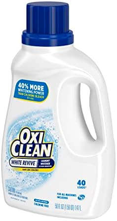 Revive dingy whites and remove tough stains with OxiClean White Revive Laundry Whitener and Stain Remover Liquid. This laundry detergent booster whitens whites 40 percent better than chlorine bleach per load without the risk of chlorine spills and splatters. When used as directed, this oxygen-based, water-activated, color-safe stain remover for white clothes removes stains, and brightens and revives machine-washable white clothes, canvas shoes, sheets, t-shirts and more, all without the harsh smell of chlorine bleach. For best results, presoak clothes in a mixture of this fabric whitener and water following label directions. You can also pretreat stains by applying this stain remover liquid directly to the stain, then washing as usual. Ideal for HE and standard washing machines, just pour this laundry detergent booster along with your regular laundry detergent, following label directions, as a chlorine bleach alternative whitener for clothes. The 66 fl oz bottle has enough laundry booster for many loads, so you can wear white fearlessly. From stain removers and laundry boosters to household cleaners and much more, OxiClean offers a product to fit your needs.