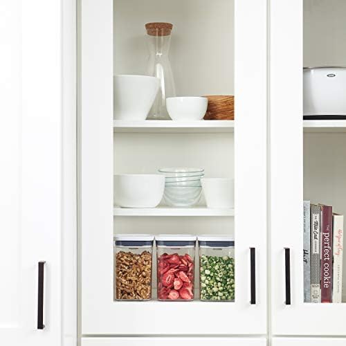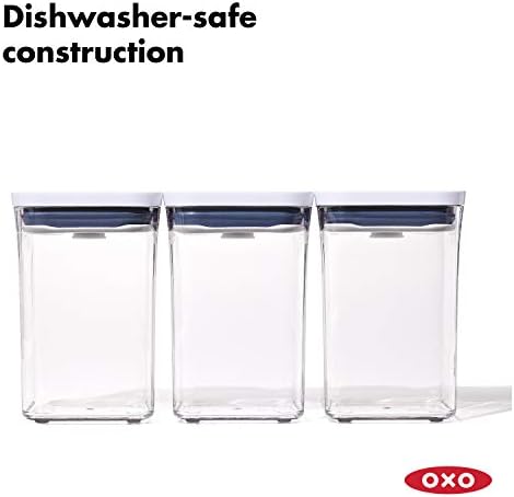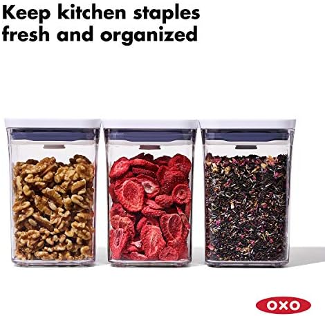 The OXO good grips two-piece pop container value set is the key to keeping dry foods fresh and countertops clutter-free. Airtight, stackable, space-efficient, and now completely dishwasher safe, These containers can be customized to fit any space. This three-piece set is perfectly calibrated for kitchen essentials like 1 lb boxes or bags or brown sugar, coffee, tea and snacks. With a handy fill line to guide you, curved corners for smooth dispensing and sturdy, BPA-free construction pop containers take tidying to the next level. Pop containers aren’t just for kitchens: use them any place you want more organization. Set includes: three 1.1 Qt containers ideal for 1 lb of brown or confectionery sugar, tea and snacks.