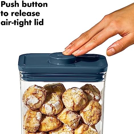 A fresh take on our POP line of storage, we’ve made our OXO Good Grips 3-Piece POP Container Set available Storm Blue lids. This limited-edition hue adds a decorative touch to your food storage needs. Each Container has a push-button lid that creates an airtight seal—and doubles as a handle for easy, one-handed opening. POP Containers are perfectly calibrated to store common household staples like cereal, flour, sugar, pasta, rice, coffee, nuts, snacks and more. They nest with lids on for convenient storage. POP Containers aren’t just for kitchens: Use them any place you want more organization. For best results, always use the button to open and close. Do not carry POP Containers by the lid. BPA free. Dishwasher safe. Set includes: two 1.1 Qt/1 L Small Square Short Containers and one 1.7qt/1.5L Rectangle Short Container.