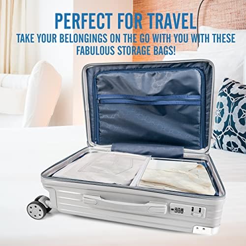 These extra-large zipper style bags are exactly what you need to get organized at home, or transport things when on the go. Perfect for packing and traveling. Organize linen cabinets and use these extra-large bags to store blankets, sheets, pillows and other bedding.