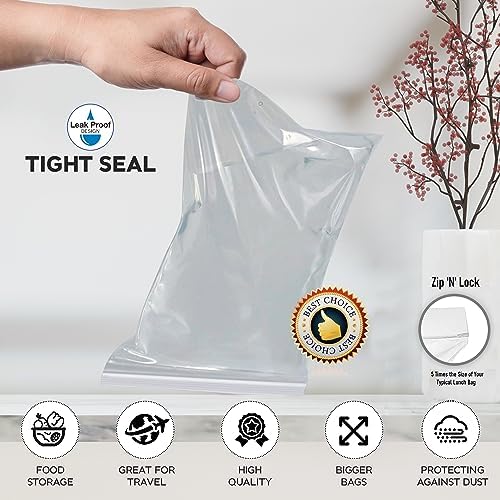 PRODUCT OVERVIEW 25 Extra Large Bags Huge 5 Gallon Size Zipper bags Dimensions: 24 x 18 inches 2 Mill Clear BPA-Free Plastic Perfect for Food & Storage Resealable