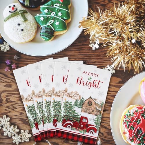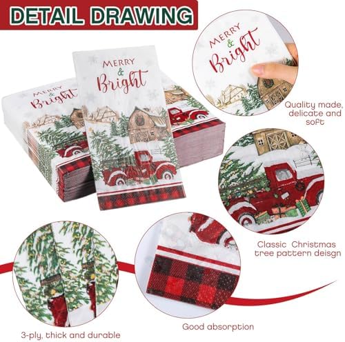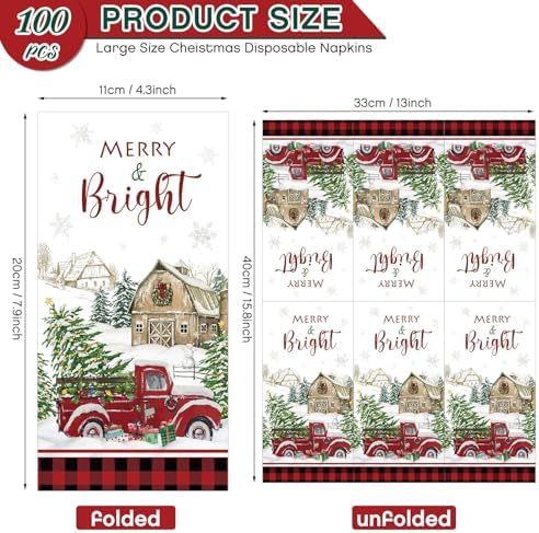 Christmas Paper Napkins Bulk: you will receive 100 pieces of 3 ply Xmas napkins, printed with red truck and snowflake scene patterns, very delightful; They add festive charm and invoke holiday spirit in every guest, making these Christmas bathroom napkins practical and elegant for the season