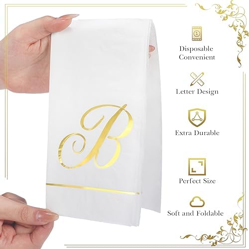 More Time to Enjoy: letter disposable wedding napkin saves you cleaning time and gives you more time for dinner and parties; Also, you can use these gold foil monogram dinner hand napkin for anniversaries, birthday parties, restaurants, offices, parties, powder rooms