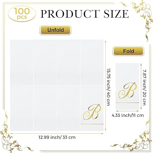 Suitable Size: white monogram paper napkins are 15.75 x 12.99 inches/ 40 x 33 cm unfolded, and 7.87 x 4.33 inches/ 20 x 11 cm folded; Lettered disposable wedding napkin suitable for your dining table can create an elegant atmosphere