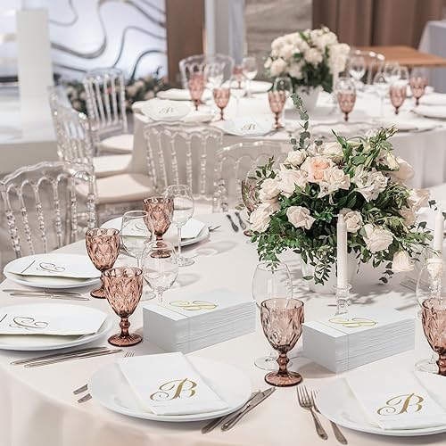 Reliable Quality: monogrammed disposable paper napkins are made of trustworthy paper, 2 ply white monogram wedding napkin is soft, comfortable and highly absorbent; Letter disposable guest napkins can provide you with a better experience and unforgettable memories