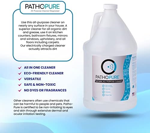 SAFE & NON-TOXIC: Other brands of cleaners are often covered in warning of their irritating and even dangerous properties., PathoPure is certified non-irritating to eyes and skin through extensive dermal and ocular irritation tests. We’re proud that you can use this surface, window, or car cleaner with the confidence that it’s totally free from toxic compounds. In fact, you can be sure that this natural floor cleaner is safe to use anywhere in your home including kid’s rooms and pet areas.