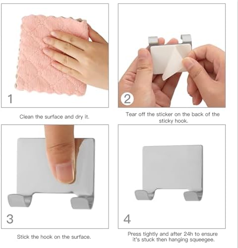 Easy to use and store: Bathroom squeegee for shower with two hooks. Adhesive hooks, no need to punch holes, remove the adhesive, and paste it on a clean, dry and flat glass or tile surface. S-shaped Hooks can be hung on the door, cabinet or shelf at will.