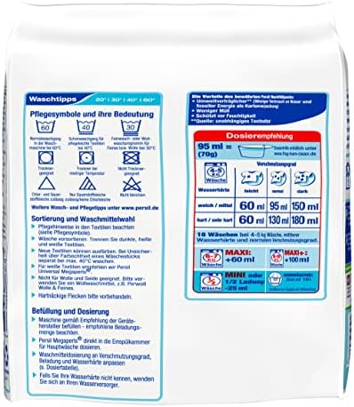 Persil Universal detergent combines sparkling clean laundry with freshness for the machine. This unique formula with deep-cleaning technology gets deep into the fibers to dissolve and remove even the most stubborn stains. At the same time, the powerful Persil washing powder is more than just a stain remover for clothes: unpleasant odors that can come from the washing machine due to deposits are effectively eliminated. For a cleaner world – Persil Washing Powder comes in a recyclable bag made from 50% recycled industrial plastic waste. Please recycle the packaging after use.