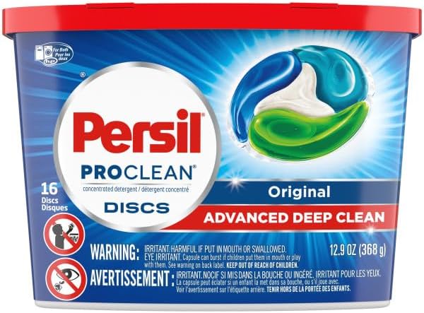 Persil ProClean DISCS laundry detergent pacs are designed with 4 powerful chambers. Each pre-measured DISC detergent capsule combines powerful stain removal, long-lasting freshness, fiber care, and the original deep clean detergent for a powerful cleaning combination. Persil DISCS are formulated to dissolve in all water temperatures, even cold water, and for use with whites or colors. Persil DISCS are easy to use, just place the laundry pacs into your empty washing machine drum before adding laundry. Simplify your laundry routine with easy-to-use DISCS detergent for a truly deep clean. It’s more than clean, it’s Persil ProClean! Persil DISCS are formulated to work in all washing machines, including high efficiency (HE) washers and are safe for septic systems. You get one tub of 16 Persil DISCS detergent packs, enough for 16 medium loads of laundry.