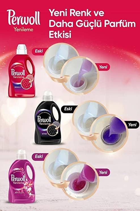 Perwoll 50Wl. (2*Black+2*Colored) *Set of 4 Perwoll Black & Texture With Perwoll Sensitive Care Detergent Your Clothes are like the first day thanks to Long-Life Perwoll Sensitive Care Detergent! Thanks to its special, developed formula, Perwoll strengthens the texture of your clothes, protects the colors, and does not fade the blacks. It is a special detergent that strengthens tissues with tissue repair and repair in micro-damages, developed with the new “Care Polymer”. Perwoll Black & Doku sensitive care detergent, with its unique and strengthened formula, prevents the colors from fading in your black and dark colored clothes and renews your clothes and prolongs their life by taking care of even worn textures. Your most valuable clothes are now longer lasting with Perwoll! With Perwoll, which extends the life of your clothes, your favorite black and dark clothes are now always with you. Perwoll delicate care detergent has a formula that does not leave any residue while cleaning and caring for your clothes. Perwoll delicate care detergent does not require pre-wash. You can use it by following the washing instructions on the Perwoll delicate care detergent. For Black and Dark Colored clothes – Takes care of intense blackness. Reduces color variation caused by color gradation. For optimal light reflection, it removes rough and gray-looking threads. In this way, your clothes stay as fresh as the first day. With Perwoll Color & Texture Perwoll Sensitive Care Detergent, Your Clothes Are Like the First Day Thanks to Long-Life Perwoll Sensitive Care Detergent! Thanks to its special, developed formula, Perwoll strengthens the texture of your clothes and protects the colors. It is a special detergent that strengthens tissues with tissue repair and repair in micro-damages, developed with the new “Care Polymer”. Perwoll Color & Doku sensitive care detergent revitalizes the colors of your clothes with its unique and strengthened formula, keeps the colors alive as on the first