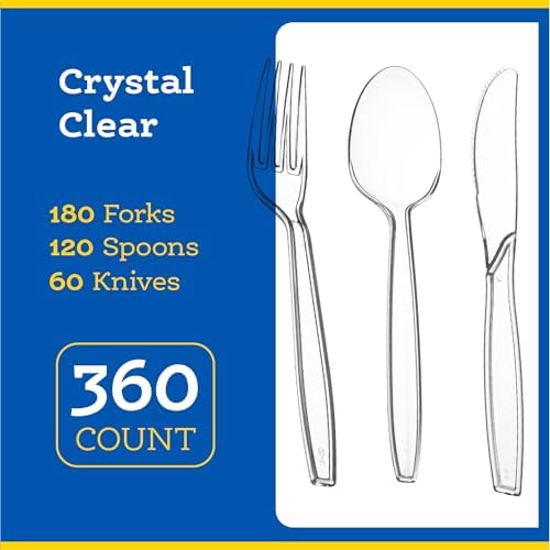 360 Count Clear silverware disposable Plastic Combo Cutlery Set Made out of Durable Heavy duty Plastic – Disposable Silverware Utensils clear plastic silverware heavy duty plastic utensils bulk