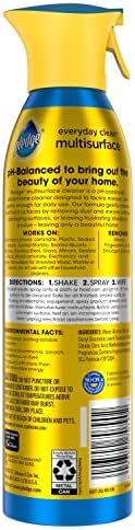 There’s a special sort of satisfaction that comes from using pH-Balance Pledge to bring out the beauty of your home. Pledge Everyday Clean Multisurface Cleaner is pH-Balance and designed for daily cleaning of 101 surfaces. The formula of this whole-home multisurface cleaner is balanced to clean and care for most hard surfaces by removing messes and dust with no damage and no dullness. It also cleans without frustrating streaks or residue–leaving only a beautiful home. It’s great for most hard surfaces: laminate, plastic, sealed granite, sealed marble, sealed quartz, chrome, stainless steel, glass, mirrors, sealed wood, wood laminate, electronics and more*. It’s the pH-Balance between cleaning and caring that cleans without damage. It removes messes, fingerprints, dust, smudges and smears. Use this trigger spray as a countertop cleaner, furniture cleaner, stainless steel cleaner, wood cleaner and as a cleaner for so many other things.* The convenient aerosol spray is fast and easy to use. There’s also a fresh Rainshower scent to enjoy. Bring out the beauty of your home with pH-Balance Pledge Everyday Clean. *Not suitable for unsealed wood, marble or granite. Do not use with other household cleaners.