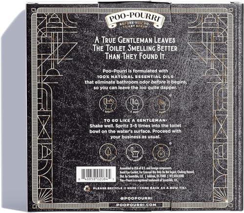 “Dapper Crapper, for the King of the Can! Spritz before you unload for a classy commode! Dapper Crapper Natural Odor Trapper Gift Set Includes: -2oz Original Citrus -2oz Royal Flush Poo~Pourri is formulated with 100% natural essential oils that eliminate bathroom odor before it begins, so you can leave the loo smelling quite dapper. A true gentleman leaves the toilet smelling better than they found it!