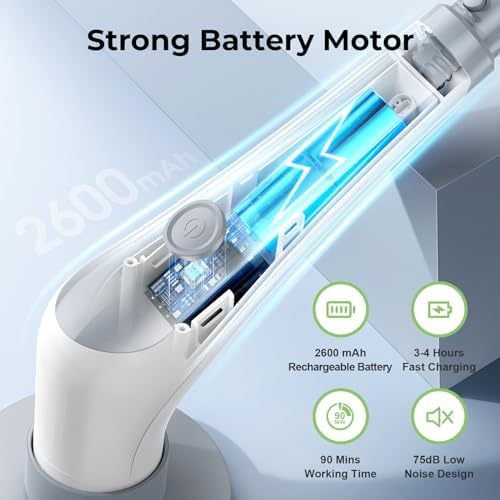 [IPX8 Waterproof and Durable Bristles] Crafted from robust stiff PP material and high-quality bristles, this spin brush for cleaning ensures effective cleaning of tough stains without causing damage to your bathtub or tiles. Its IPX8 full-body waterproof feature guarantees safe daily usage in water for extended periods without any risk of damage.