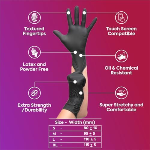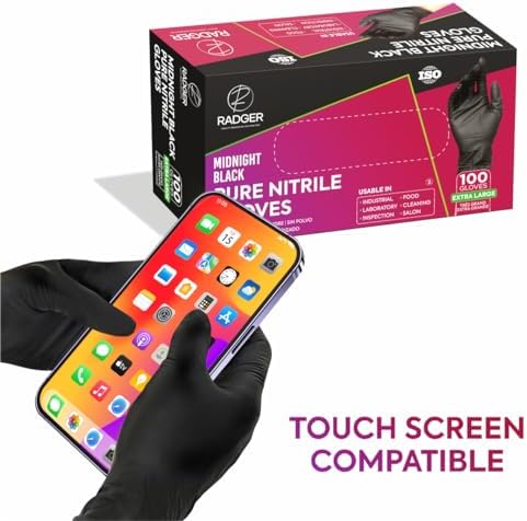 RADGER Disposable Black Pure Nitrile Gloves offer superior strength and comfort. The textured fingertips provide slip resistance and extra grip in wet or dry conditions. Each glove features a rolling cuff and is 4 mil thick. They are non-sterile, powder-free, and latex-free and vinyl free. Why Choose Nitrile Gloves? Nitrile is chemical and puncture-resistant material providing a higher level of protection against liquids, gases, oil, grease, and sharp objects. It does not contain any rubber or latex and is non-irritating to most skin types. It is prefect for people with sensitive skin and those who are prone to allergic reactions. All RADGER gloves are manufactured according to ISO 13485:2016 standards, your assurance of the best quality. All gloves exceed current SGS standards for critical defect, tensile strength, and puncture resistance RADGER Nitrile Gloves features the highest level of quality, best value, and largest selection for professionals and consumers. RADGER truly believes in providing the best quality product with the highest level of customer satisfaction.