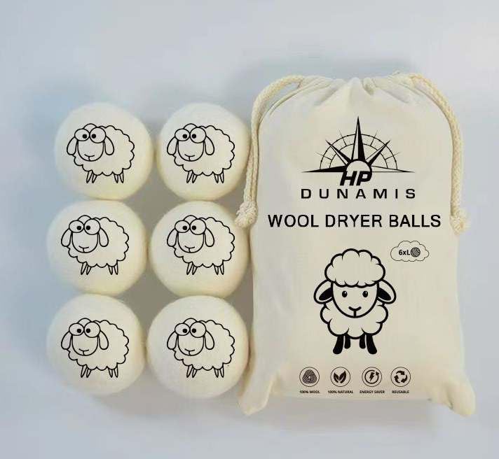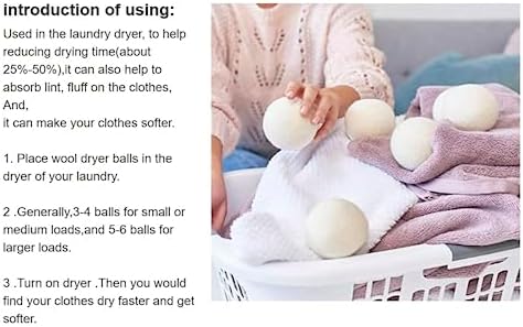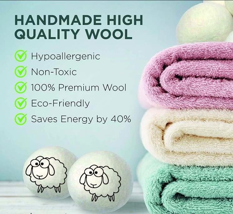 100% WOOL REUSABLE DRYER BALLS. Gets rid of static created by drying cycle leaving clothes smooth and wrinkle free without harmful chemicals.