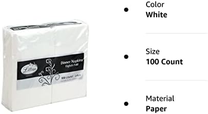 Lillian Premium White Napkins, 1/8 Fold Dinner Napkin, Value Pack 100 Count