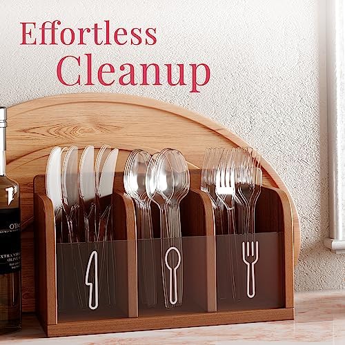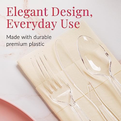 GRACEFUL PRESENTATION: ELEVATE YOUR TABLE WITH STYLISH PLACE SETTINGS. Arrange into place settings for formal meals or bunch together at the buffet bar with these plastic cutlery.