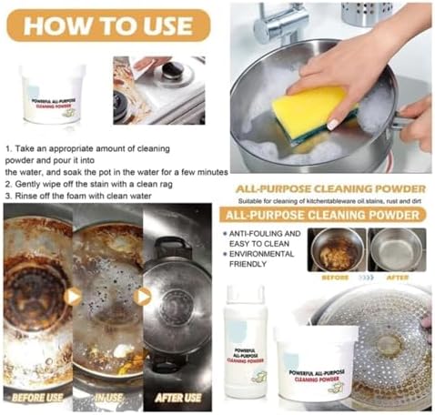 Powerful Kitchen Universal Cleaning Powder: Powerful kitchen all-purpose powder cleaner simply mix with water to activate the powder into a powerful solution. Apply and observe oil and grease stains to dissolve quickly with minimal effort.