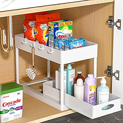 I really like these organizers. I put them under the sink and they fit perfectly and they work great. It saves a bunch of space and I like that it is a drawer-style organizer. I fit a lot of stuff on it and thought it might collapse but it is very sturdy and still working great! A fabulous choice for your organizing needs. – John