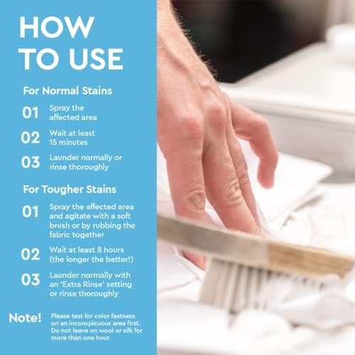 COMPLETELY ELIMINATES berries, milk, baby formula, #1 & #2, egg, avocado, blood, oil, tomato sauce, watermelon, mud, and hundreds of other stains and odors; EFFECTIVE ON clothing, bibs, bedding, blankets, burp cloths, stuffed animals, swaddles, car seats, cloth diapers, delicates and other washable fabrics