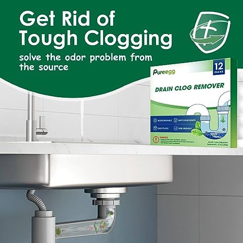 NO MEASURING, NO MESS: Pureegg drain clog removers come with 12 pre-measured packs that can make clearing a slow-flowing drain super easy. All you have to do is pour one or two packs down the drain, add hot water, and wait 30 minutes or overnight before flushing with clean water.
