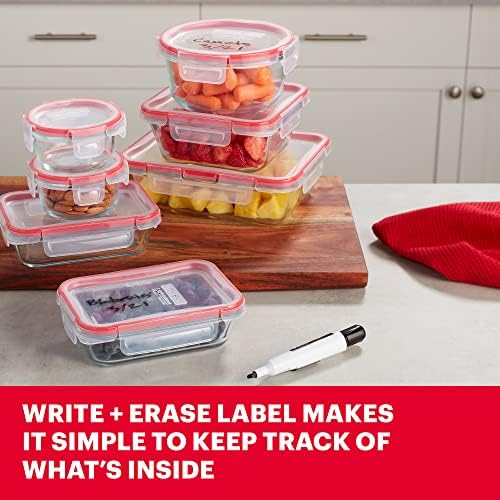 This set of containers is a great starter set, with a variety of sizes for storing all sorts of foods. The durable Pyrex glass containers stand up to the microwave and dishwasher use after use. The locking lids are airtight and leakproof, so you can take it on the road or store for later. And the Write + Erase label makes it simple to keep track of what’s inside.